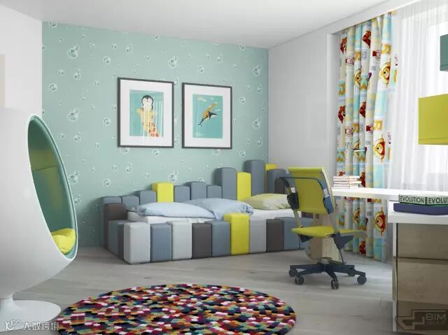 孩子们的房间是他们的小天地,挂画以漫画、植物和动物为主,当然色彩尽量明快、活泼一些营造出轻松欢快的氛围。