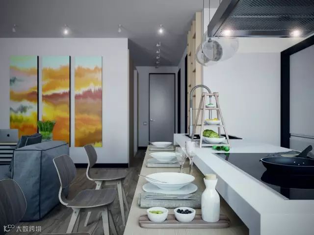 餐厅是一家人吃饭的空间,挂画的色彩和图案选择可以是清爽、柔和、恬静、新鲜的,这样的画面能勾人食欲。