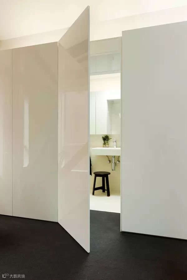 ▲楼梯直通上方的卧室,浴室是隐藏在几扇白色门的后面,客人想要找到它,绝对是一个挑战。