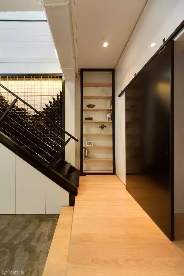 ▲整间公寓饿的一大亮点在于楼梯口处葡萄酒储藏室。有多少瓶葡萄酒能储藏在这个神奇的秘密通道,不禁让人遐想。