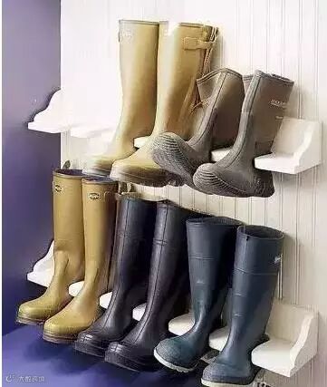 门后面的空间,可以放上一些不用的木条,中间掏空出大小适宜的空隙,长筒的鞋子就有了很好的去处。