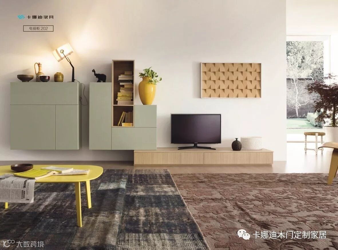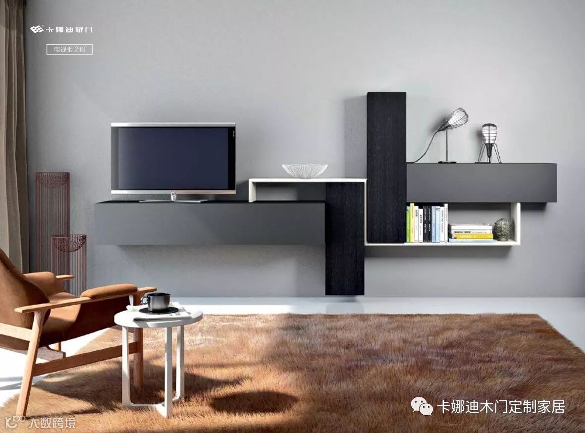 定制电视柜根据背景墙的尺寸量身打造,配合客厅的整体色彩,
