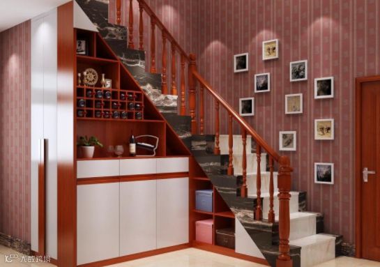 利用楼梯走势,打造出一块专属藏酒天地。白色门板与红木搭配,呈现出独特的视觉美感。半封闭式设计,尽可能拓展收纳空间。这款酒柜独特新颖,更是一道家居亮点。