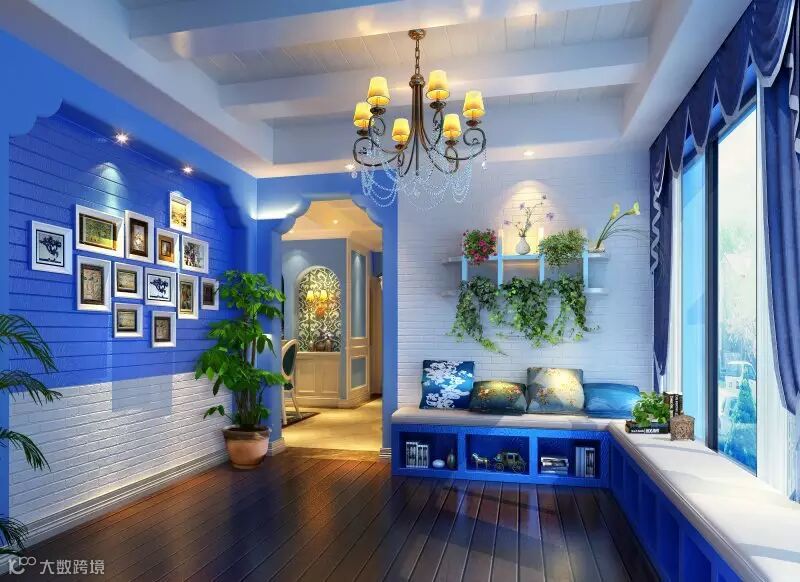 蓝色是一种冷色调,看到蓝色就想到地中海风格,蓝天、大海是那么的纯净、自由、奔放。家装中使用蓝色,能享受到纯洁、冷静的居家氛围,从清新中追逐沉稳、理性的气息。
