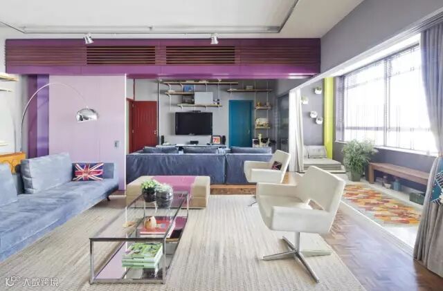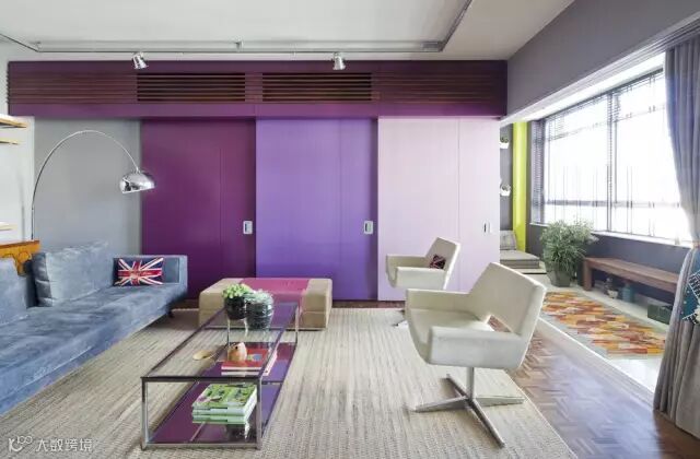 用彩色的移门进行划分,关上移门就是一个独立的空间,打开了,又是一个大大的厅,是不是很有想法呢?