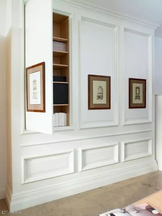 一整面墙因为有一个门而破坏了整体的流畅性和美感,那么我们就会用隐形门的方式去把门弱化掉。
