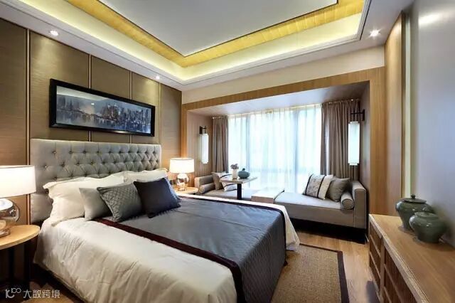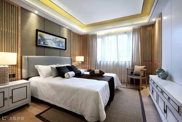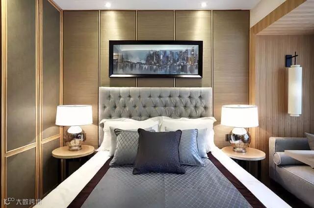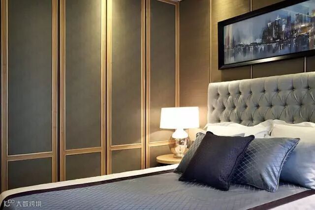 ▲墙头装饰非常用心,软包的床头配着大气时尚的床品,传递出一种现代人们喜爱的低调又华贵的气质。现代灯具与古典灯具相间融合,非常有味道。