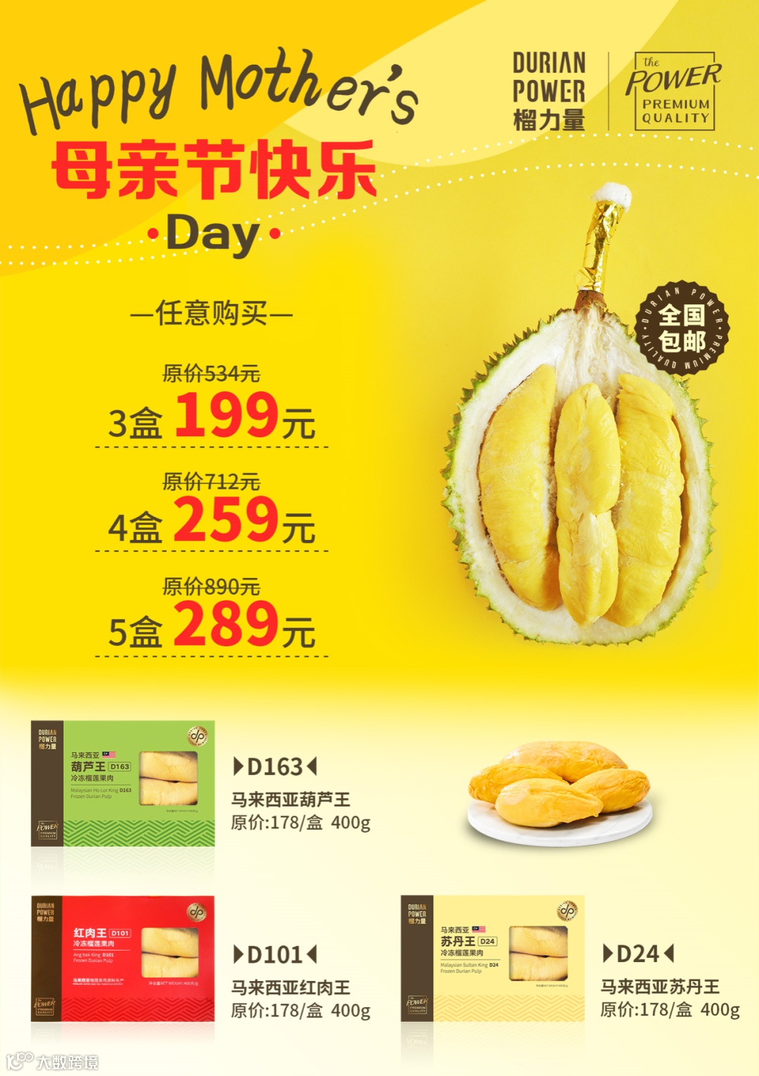 千挑万选最纯正的马来西亚猫山王,自然成熟,炽烈浓艳的气味无比霸道,一口足以吞没食用者的味蕾,承诺所有产品只做100%纯果肉!