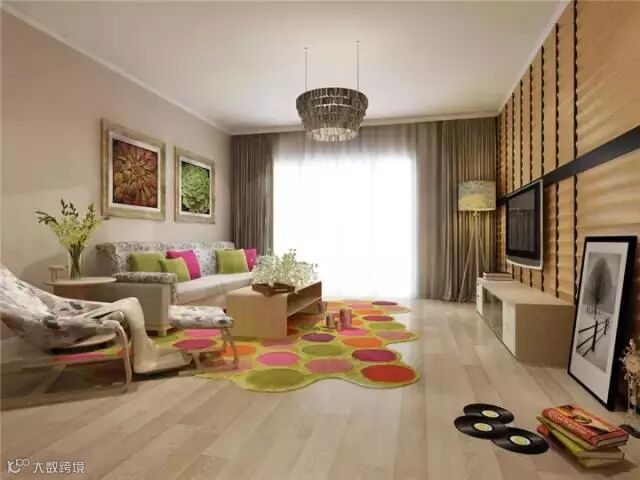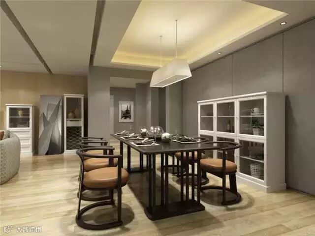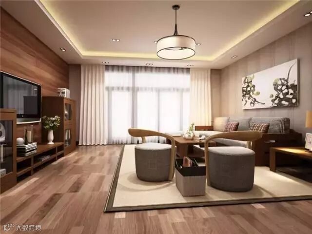 地板采用比较简单的图案,且不同材质的地板、地砖不能搭配得太杂。天花时,也不应选择过于复杂的吊顶。