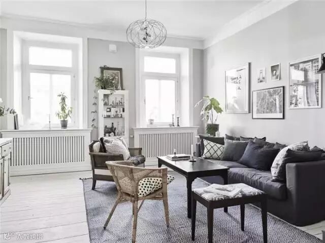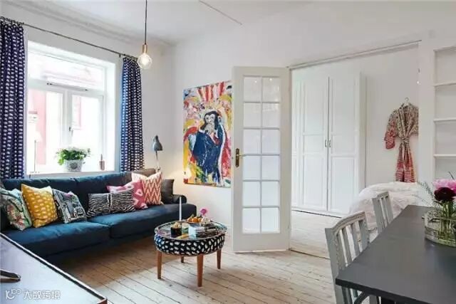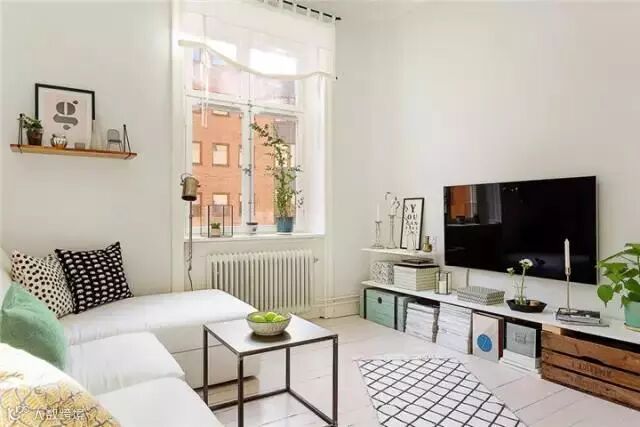 北欧家居中常用的白色为主,深色为辅,再配合一定彩色装饰品的留白方式,更是小户型扩大视觉效果的利器。