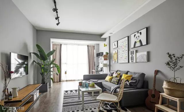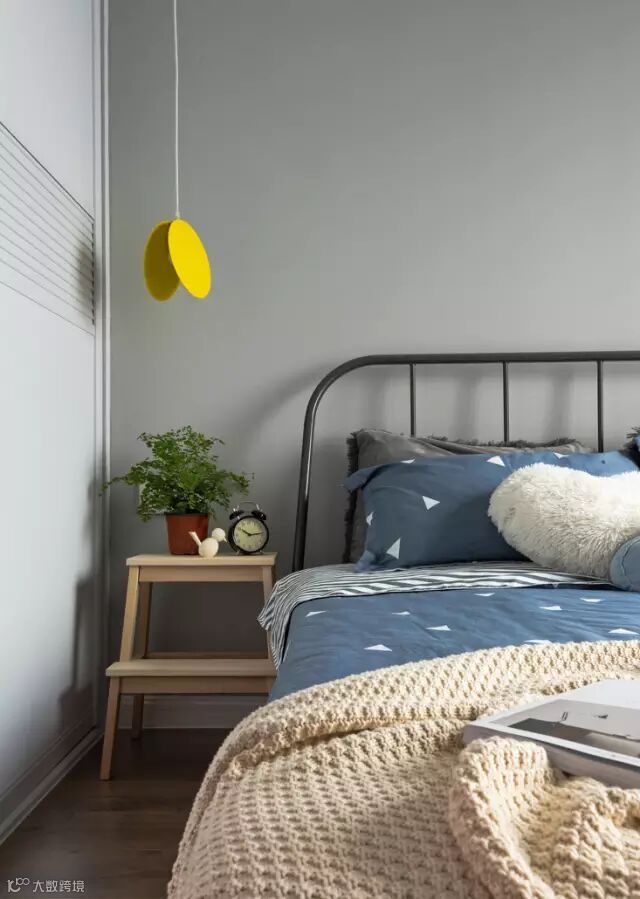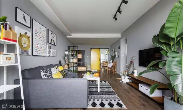 灰色、黄色是这套两居室的主色调,灰色看起来沉稳有质感,黄色跳跃有活力,两种颜色看似不搭,实则很配。