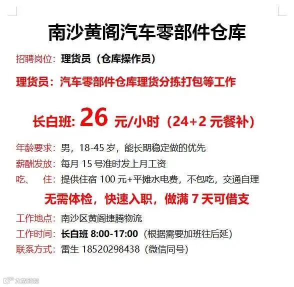 可安排面试 | 长白班26元/小时工|男性18-45岁|能长期做可转正|无需体检,快速入职