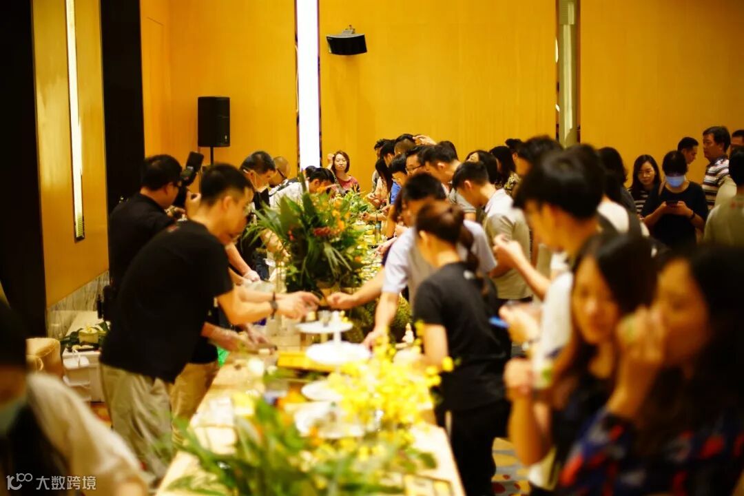 这试吃台人多到摄影师的镜头都挤不挤去拍食物了!