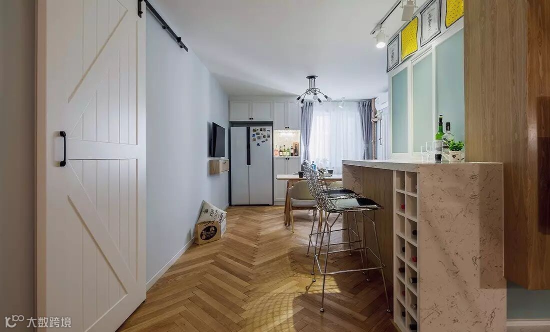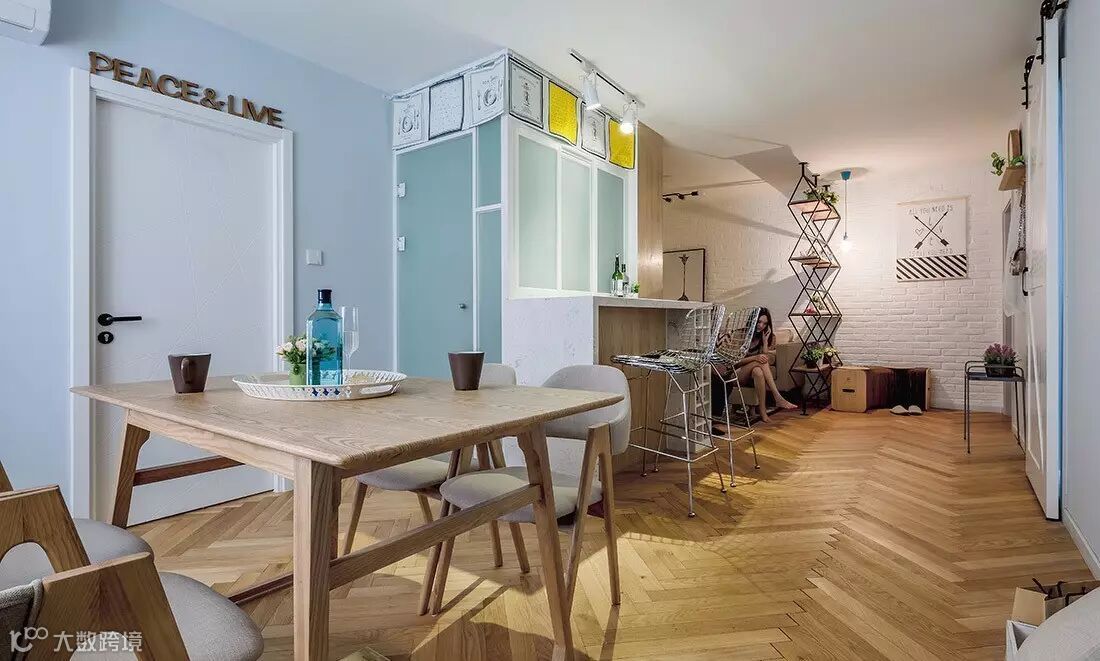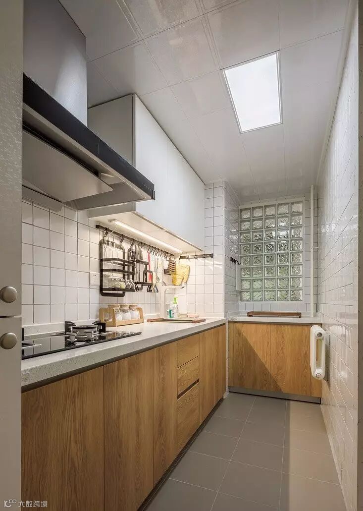 ▲设计中将厨房面积扩大,使用磨砂玻璃与客餐厅相隔,这一点是你想不到的吧?