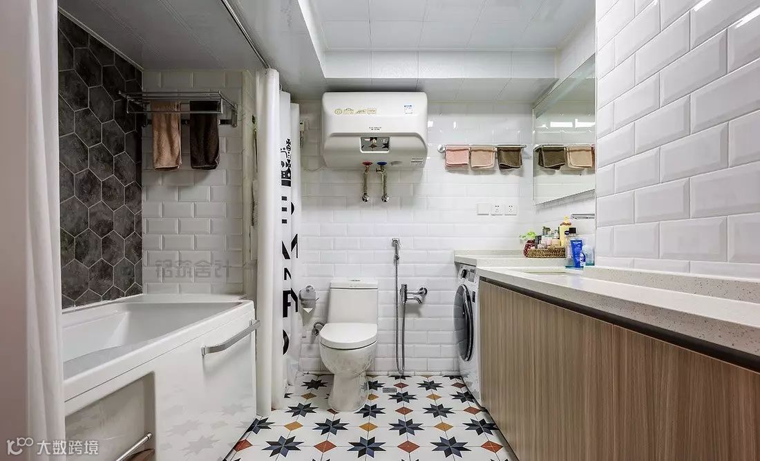 ▲卫生间内部干湿分离,不过地面的枫叶小花砖抢足了风头。