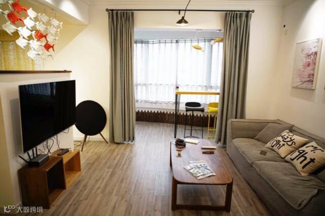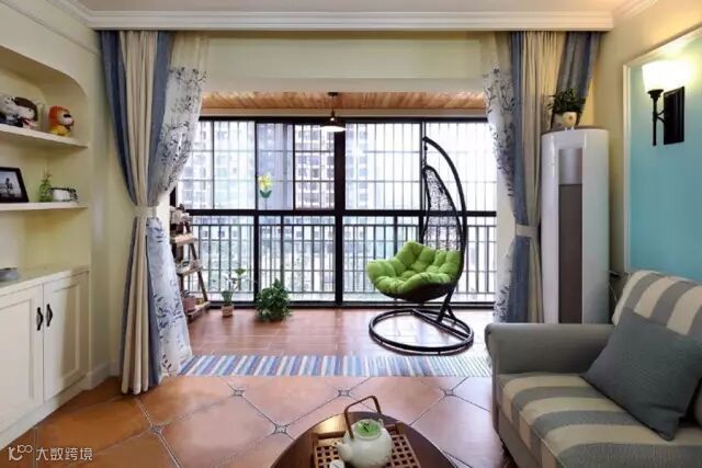 ②打通后阳台杂乱的,可以在中间装窗帘;