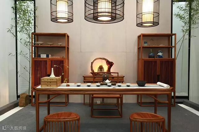 风格清雅古朴,充满浓郁的东方色彩。主要营造舒适、安逸的氛围。茶室布置,可选用红木或仿清明桌椅,配以素雅的书法条幅、山水国画。木质的装饰材料雕刻图腾纹祥的图案,更具古色古香的韵味。