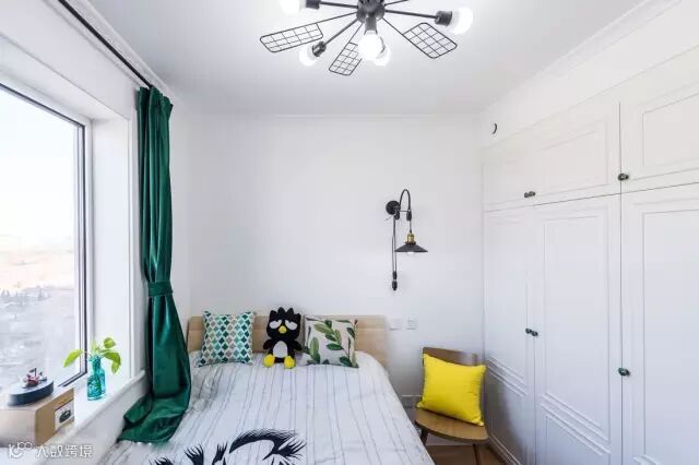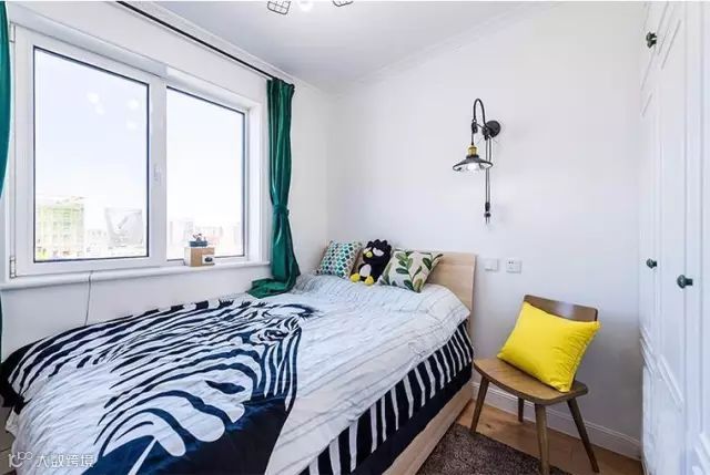 简单的卧室设计,却也让人眼前一亮,简单的黑白配打上一抹墨绿与鲜黄,不突兀,不平庸,个性却不张扬。