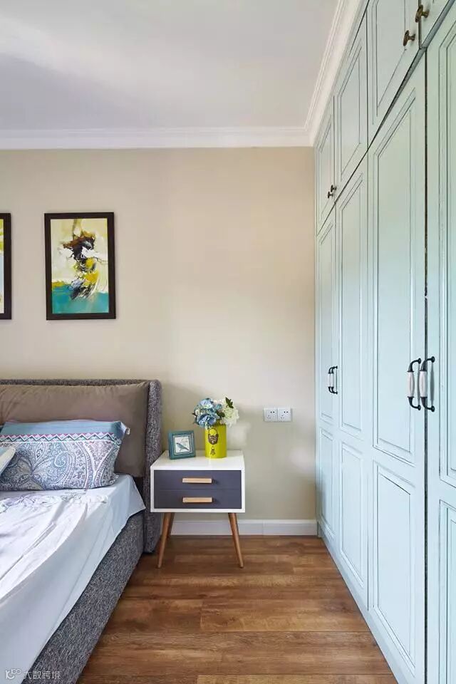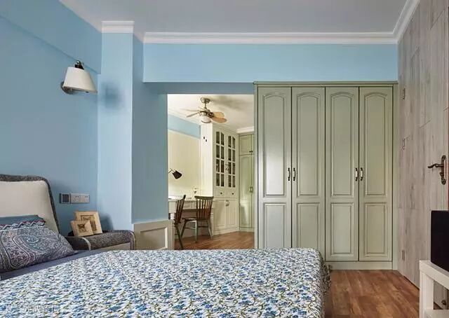 主卧空间不规则,将多出来的空间改成衣帽间兼书房,空间最大化利用,收纳功能也是超赞的。