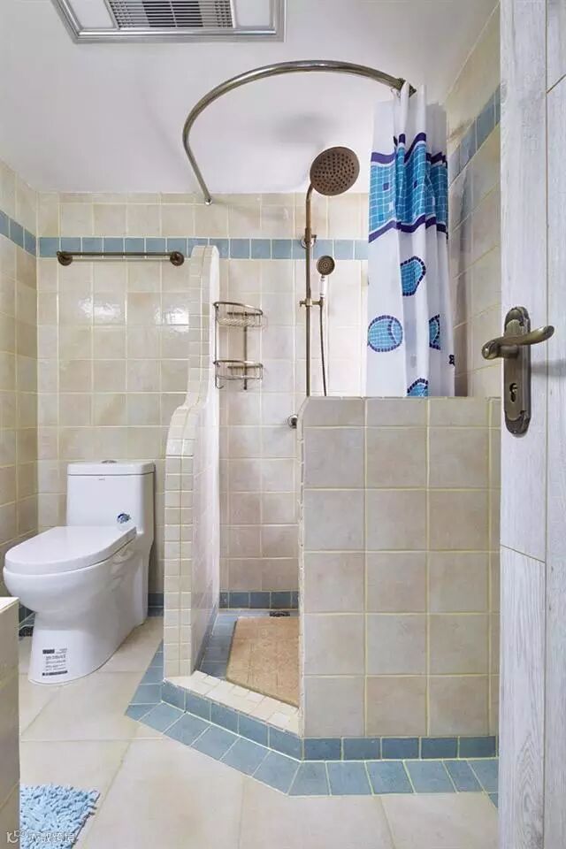 卫生间淋浴房,砌了一堵矮墙,蛮有个性的。