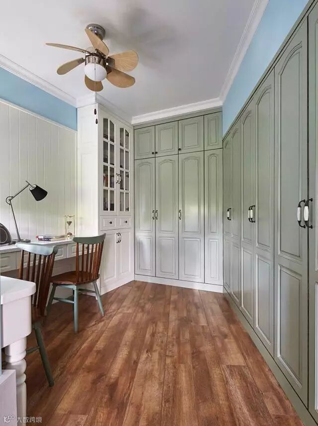 这是衣帽间,也是书房,做了好多的柜子,再多的衣物都有地方放了~