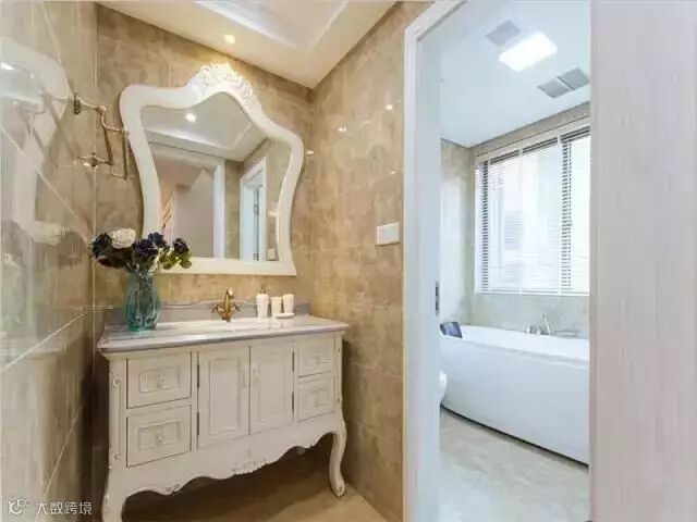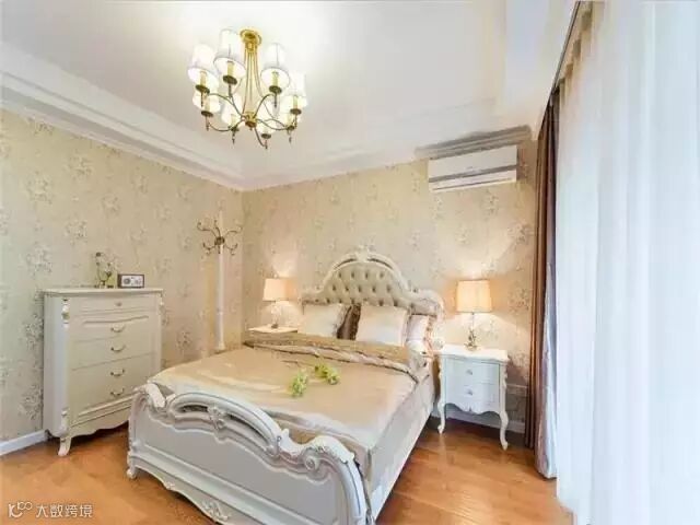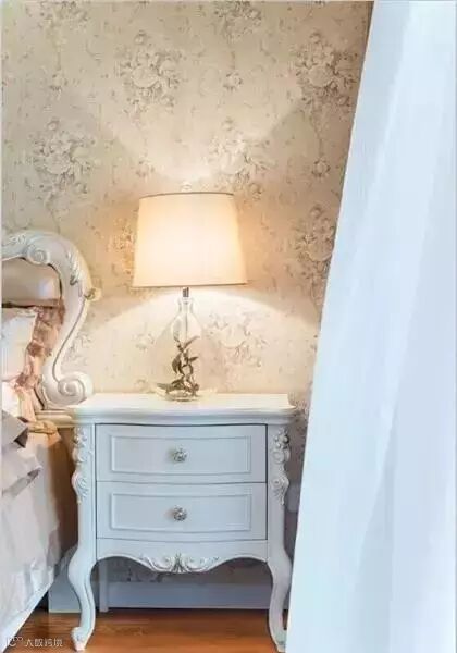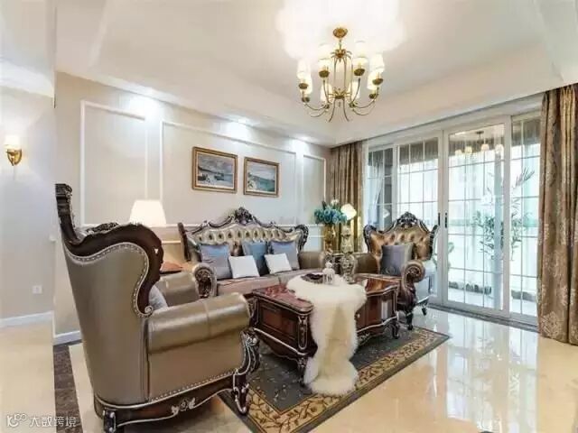 白色的地砖地面越发衬托欧式家具的华贵,铺上复古色的地毯柔软温馨