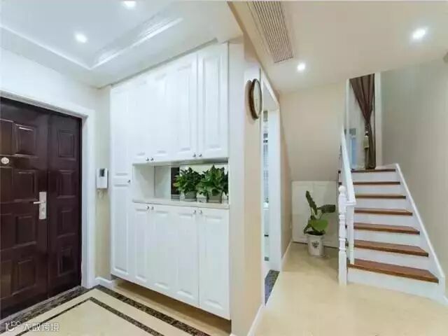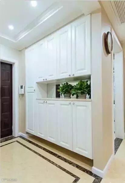 以整面墙墙柜实现出门入室的收纳,悬空地面一段距离的设计很方便换鞋