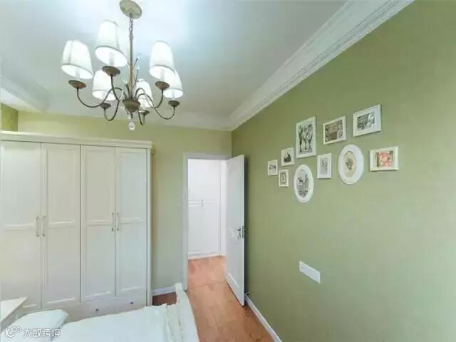 青草绿的色调清新可人,墙面装饰画增添了一些小亮点