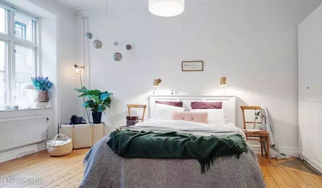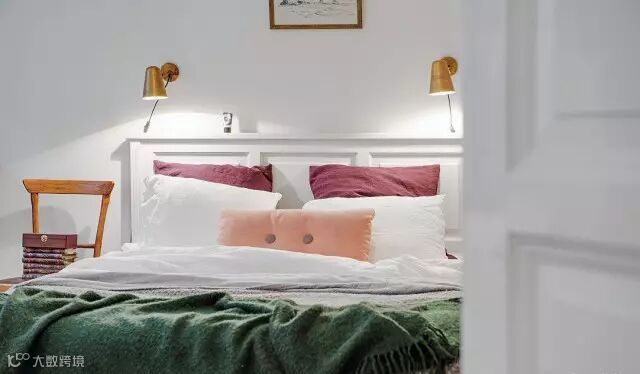 ▲卧室设计,颜色多彩丰富,营造出视觉美感;墙角处放置一个单人的书桌,配之一款白色的座椅,小巧而不占空间面积;两把原木色的椅子代替床头柜,使得小卧室更加显空间和轻盈感。