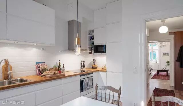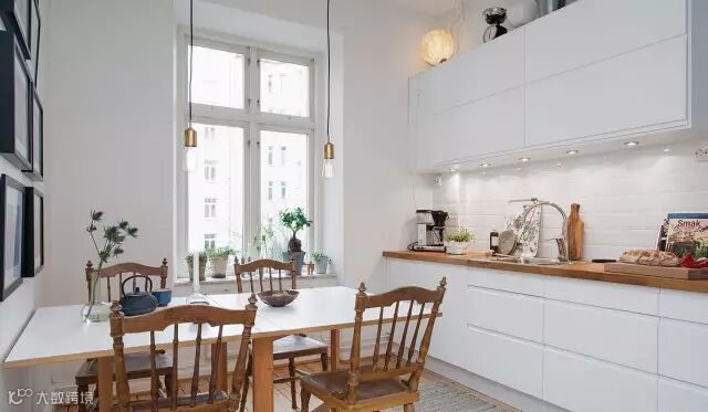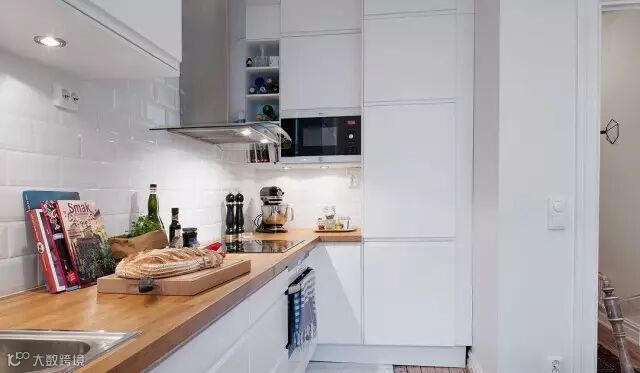 ▲橱柜选用白色为主色调,台面采用原木色,自然又好打理,虽小但很整洁。