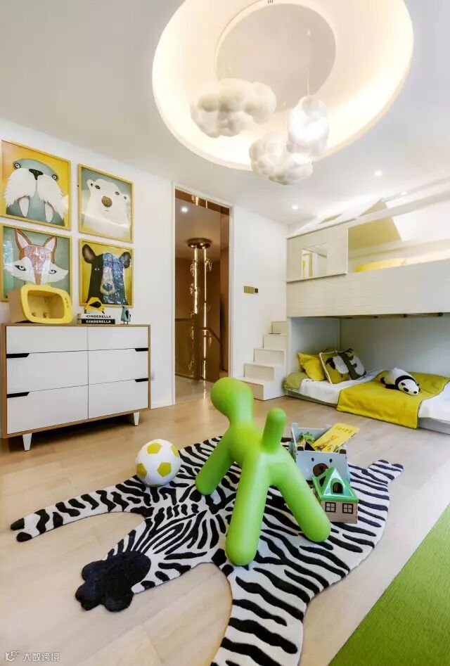 儿童房的设计上,为喜欢动物的小朋友,营造了一个充满童趣的动物乐园。充分利用垂直空间,打造出学习、玩耍的多重益智功能。