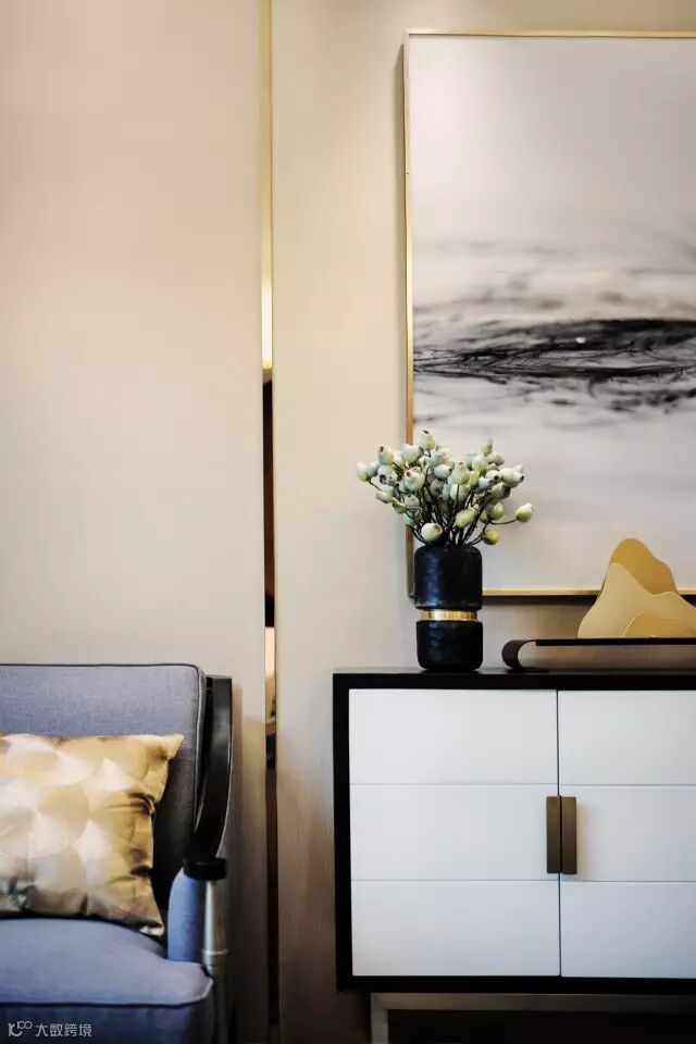 本案的设计以墨灰为主基调,点缀靛蓝、黎色,呈现出雅致、沉韵的空间之美。客厅中,充分利用现代的设计语言,精致的工艺、不同材质间的搭配,展现着充满东方韵味的现代居住空间,突显了主人对生活品质的追求。