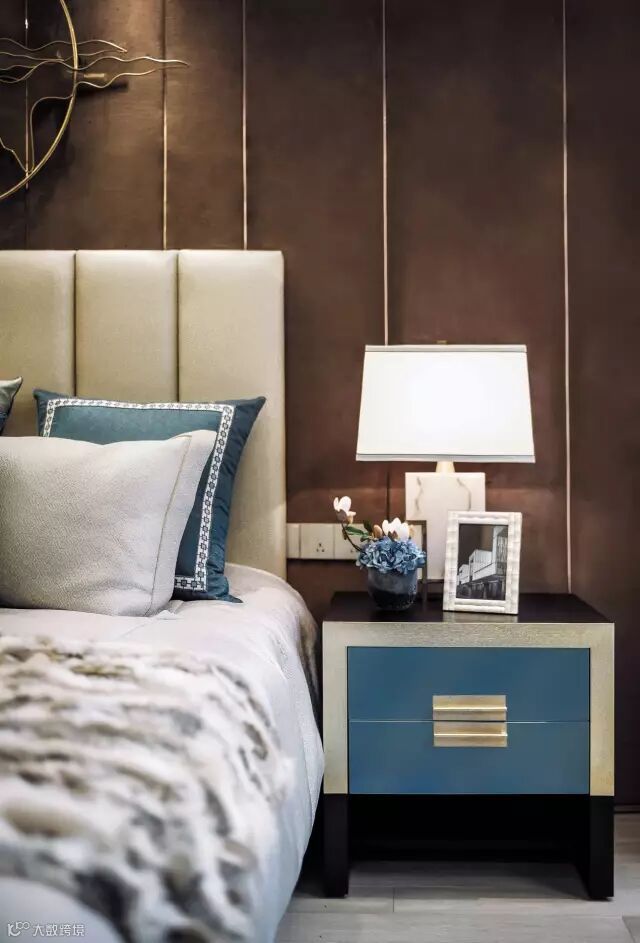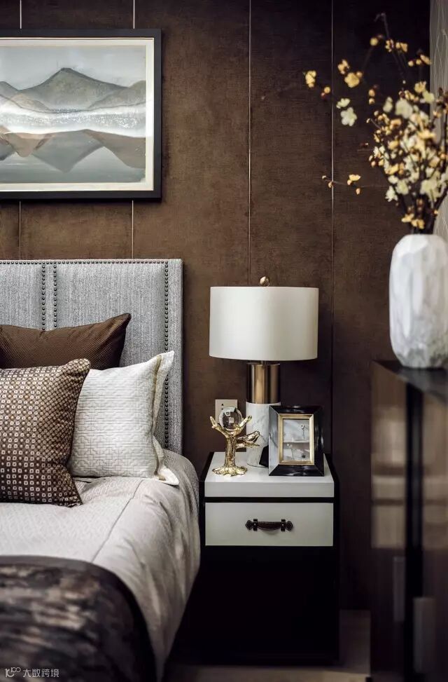 主卧室营造出一种静谧的东方现代美,整体家居感觉透露出主人对中国传统文化新的思考,用减法的表达方式对中国传统进行新的定义。