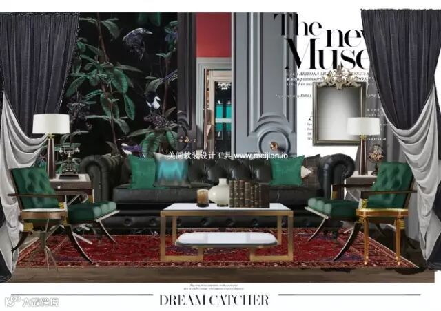 以英剧《神探夏洛克》为例,英国男人的绅士品格非常出名。而他们的侦探,除了绅士品格之外,还略带着神秘的气息。因此他的客厅应该是一个既有意志又有克制的空间,点到为止,也充满了暗涌。略带妖娆盛放的壁纸呈现出阴郁的华丽,一张英伦的皮质沙发,独具气质,祖母绿的单椅点到为止,暗红的的复古地毯醒目提神,卷在两边的窗帘更加笼络住这样的绅士氛围。