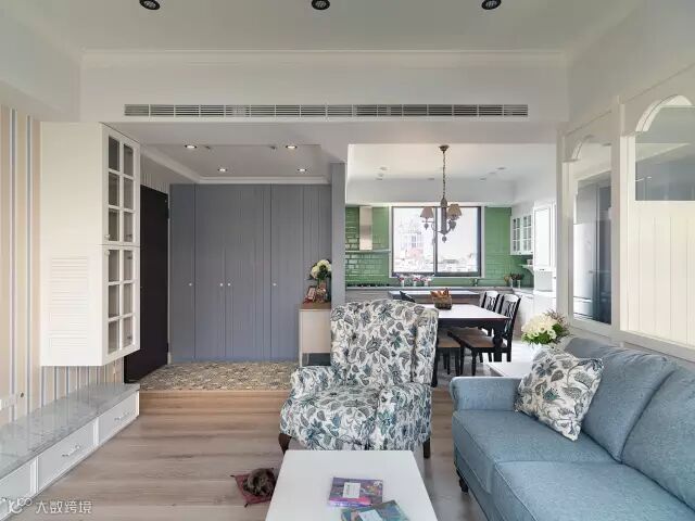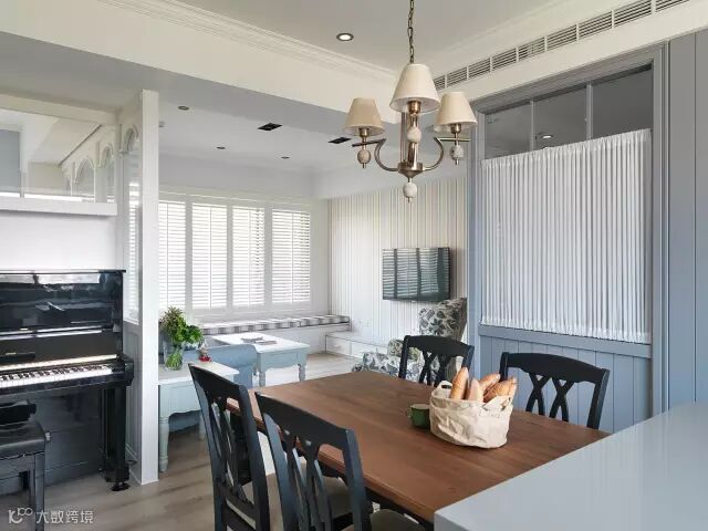 开放式的布局,让本来就非常清新亮丽的空间基调更加的通透明亮,想象一下吧,每天清晨起床,拉开百叶窗,阳光就能充分的照射在屋子里几乎每一寸角落,因为家具的摆设没有一处是挡光的,十分敞亮。