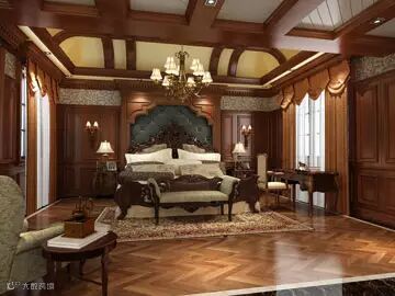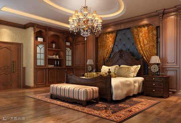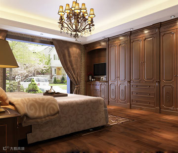 全实木打造的门窗护墙一体化的卧室,在整屋定制的概念中,家装中所有产品风格可以做到完全统一。