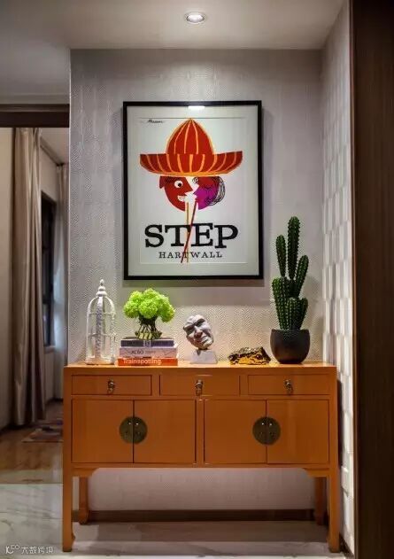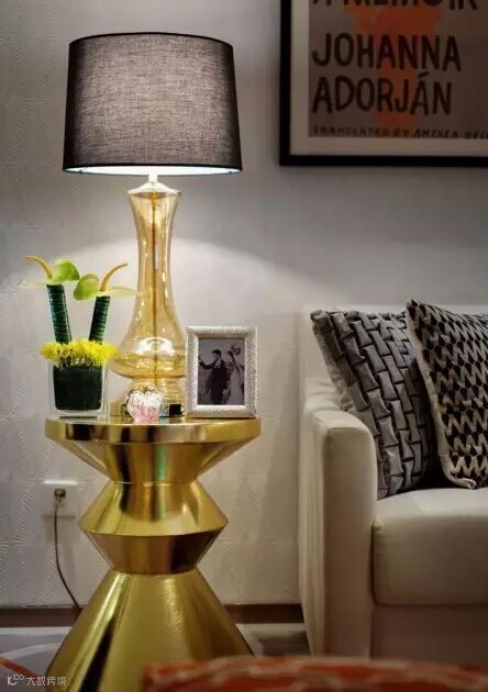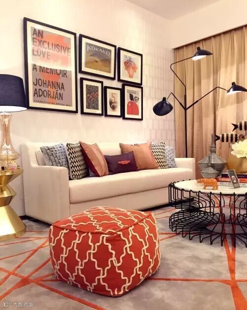 以桔橙色和暖米色为主色彩,加以黑灰,亮金色配色来装饰整个空间。