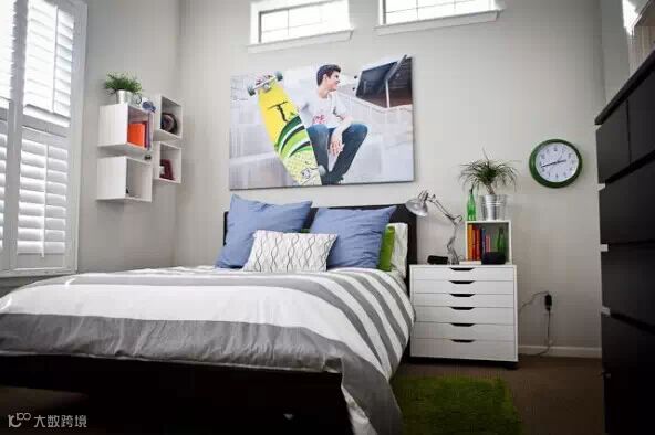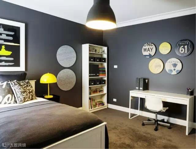 十几岁男孩子的房间,很多都用到了黑色、棕色或者蓝色,尝试用鲜艳一点的颜色其实也挺好的。