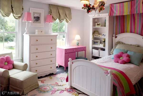 少了粉红色,绿色的房间也别有一番景致。
