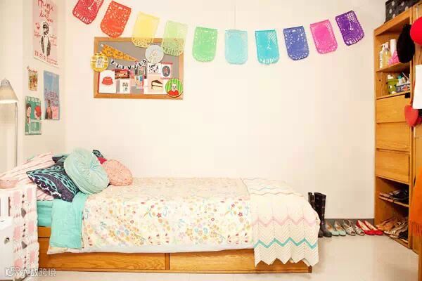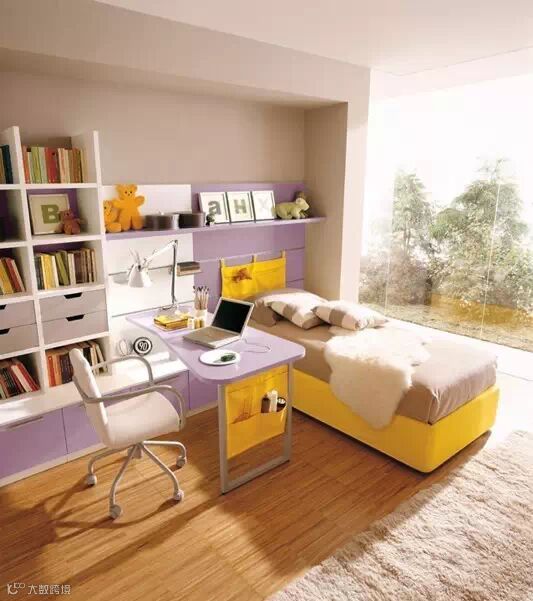 学校宿舍式的设计,上面是床,下面是书桌,比较节省空间。