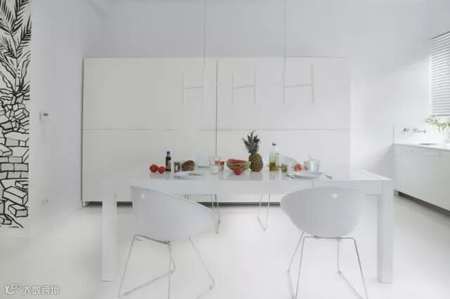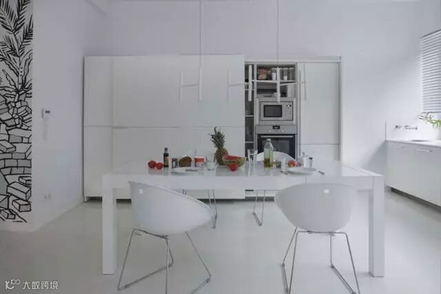 公寓的整体空间约有140 平方米,包含充满艺术气息的独特装饰空间,在空间格局的规划,设计师采用简单的开放式设计,打造清爽鲜明的公共空间,包含客厅、用餐区以及一个功能齐全厨房,厨房的隐藏推拉门设计,可将所有电器在不使用的时候,被巧妙的隐藏起来!