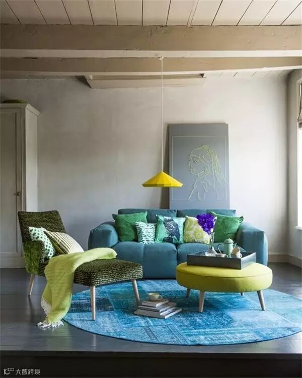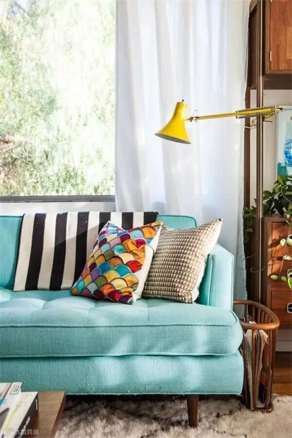 湖蓝色有了绚丽色彩的抱枕点缀,让家居环境显得更具体和突出,让沉稳的蓝色多了一份傲娇的气息。