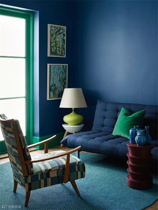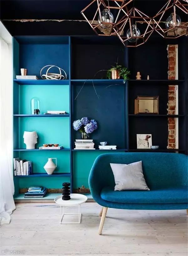 深邃的蓝色沙发配以同色系蓝色的背景墙,有一种说不出的静谧,仿佛进入了自己的小世界,与世隔绝,一切都变的很慢,做自己喜欢的事沉浸在自己的空间。