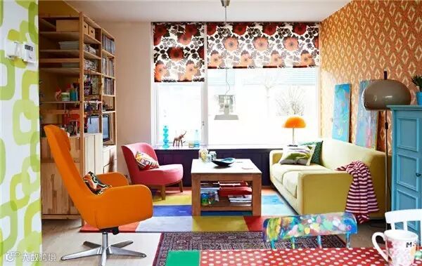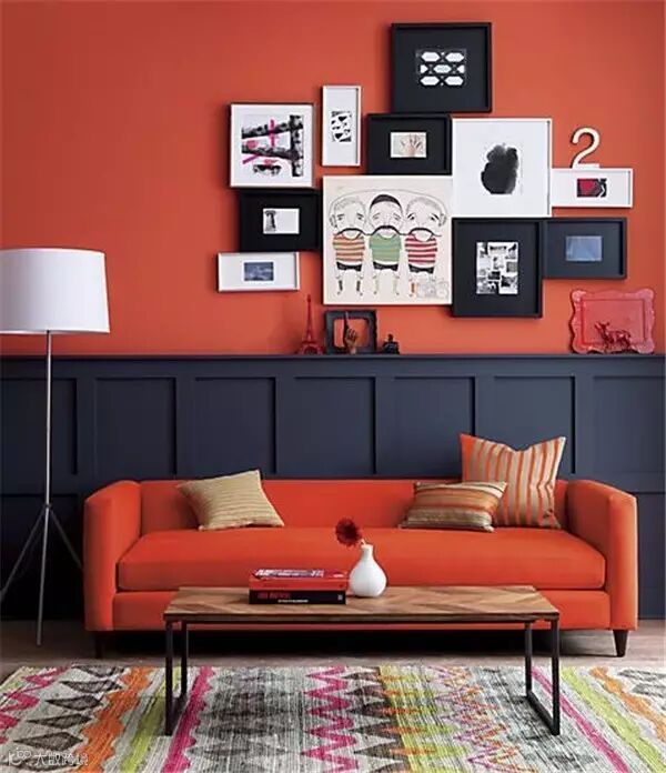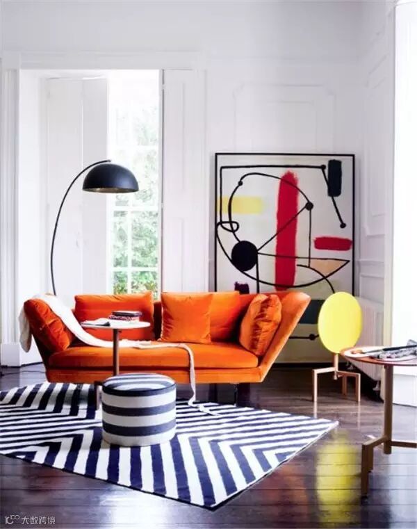 橙色相对于明黄色来说会成熟些,如果说黄色是位豆蔻的少女,橙色就是个成熟的女人,不张扬,但华丽稳重,同时也让客厅变得鲜活起来。