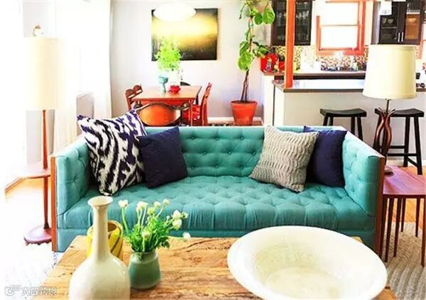 薄荷绿的小清新色调,必定是文艺青年们的爱了,绿色让人看到生机,饱和度没有那么高的薄荷绿看起来更是让人心情愉悦,配以舒适的抱枕躺上去仿佛置于温柔的流水般,一切都是淡淡的。