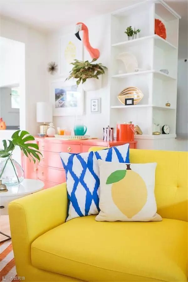 黄色是充满活力动感的象征,明快的颜色代表了欢乐的气氛,同时也能吸引你的注意力,给沉闷单调的房间带来一丝刺激和热情,客厅若是选择黄色系沙发,一定能给你带来一整天的好心情!