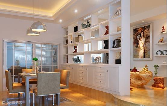 客厅和餐厅之间设置隔断。在客厅与餐厅之间做一个这样的隔断,能起到引导动线的作用,而且这样的隔断也完全不会让空间有压抑感。