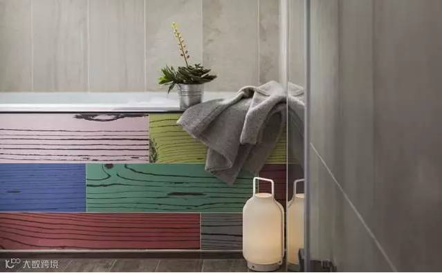 如果你也喜欢木质地带来的纹理和温润质感,不如考虑在浴室铺上木纹砖地面吧!也可以在浴缸外贴上仿旧彩色木纹砖,多彩的颜色搭配让洗澡的心情更加愉悦缤纷!