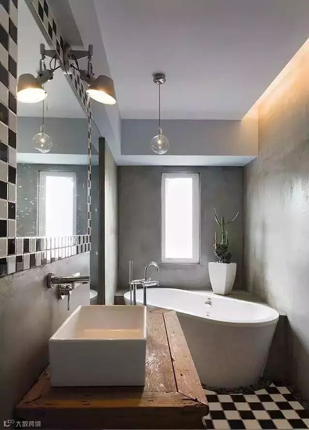 复古感的黑白搭配似乎永远没有退流行的一天,利用水泥的朴实特质,将空间架构的垂直水平线条保留,黑白色的方格磁砖缀饰镜框及地面,复古中带有一点独特的古灵精怪。