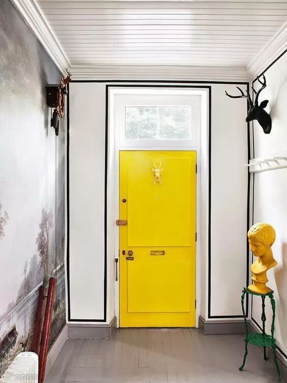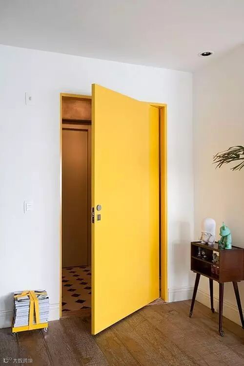 明黄色的门框+绿植